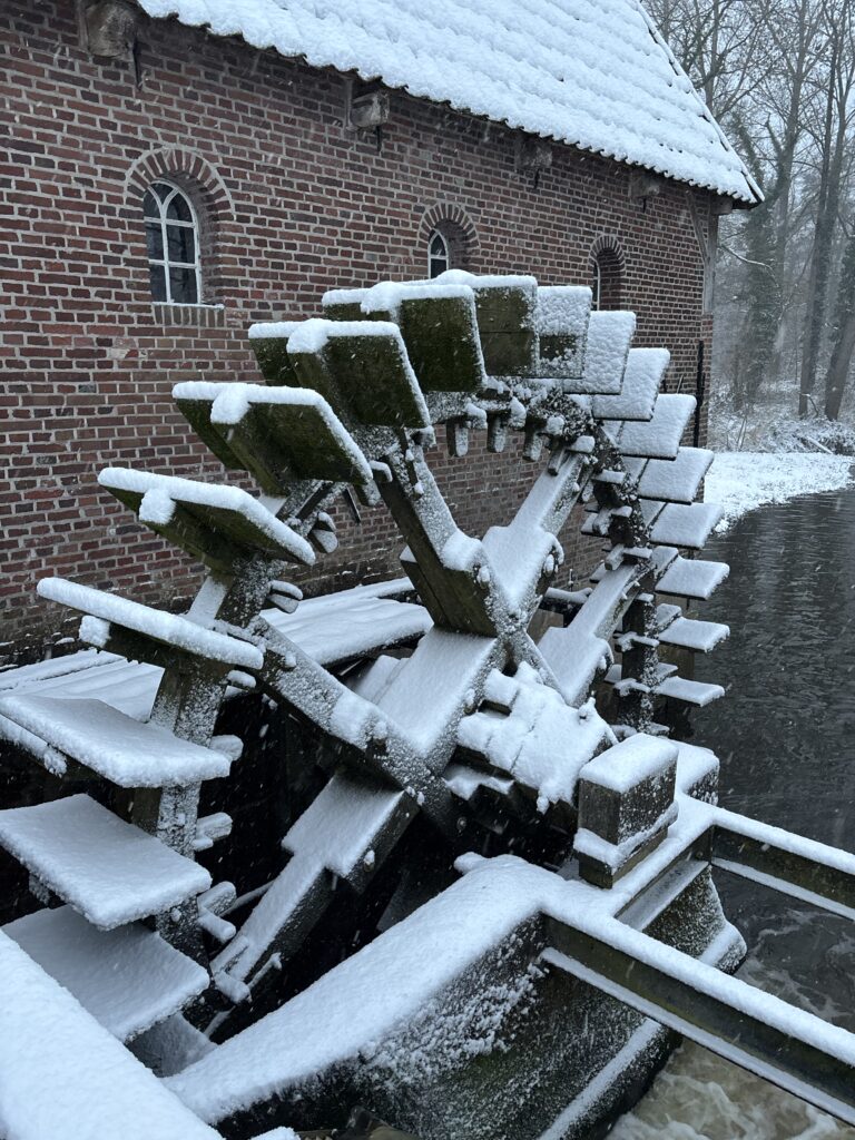 De watermolen heeft 5 verdiepingen met elk zijn eigen charme. Zo kunt u o.a. kijken in de graanzolder, maalderij, opzakruimte en koekjeszolder. Uiteraard kent de watermolen een lange geschiedenis, wat goed terug te vinden is in de diverse ruimtes. Zo zijn de oude molenstenen, kamwielen, koekenbreker, zakkenkarren, paardentuigen, foto’s, stempels, e.d. te bekijken in de watermolen.